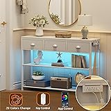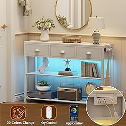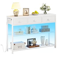 - Elevate your space with Furologee entryway table, featuring convenient 2 USB ports and 2 outlets for charging, 20 colored LED lighting achieve both illuminate and decorate. This hallway table offers 3 spacious drawers for organized storage, blending practicality with contemporary style. Perfectly sized for narrow hallways, living rooms (behind sofas), or as a chic TV stand, its sleek white finish complements any decor while providing essential charging access and ambient illumination