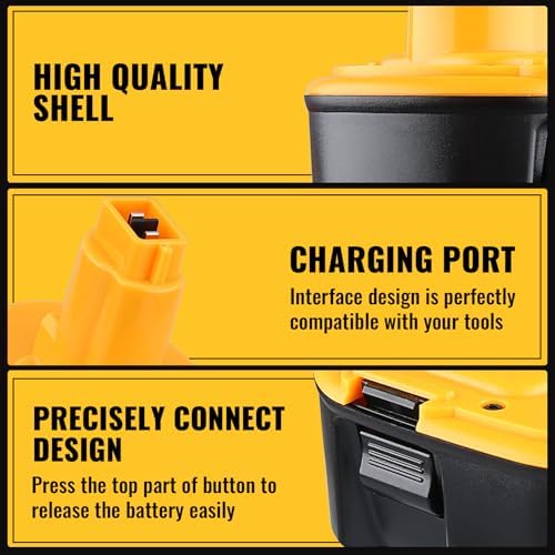 - 【High Capacity】Upgraded to 4800mAh high capacity battery with high quality cells for long-lasting performance. Our upgraded 4.8Ah battery have a higher capacity and weight lighter than the standard NI-MH DC9096 18 volt batteries.