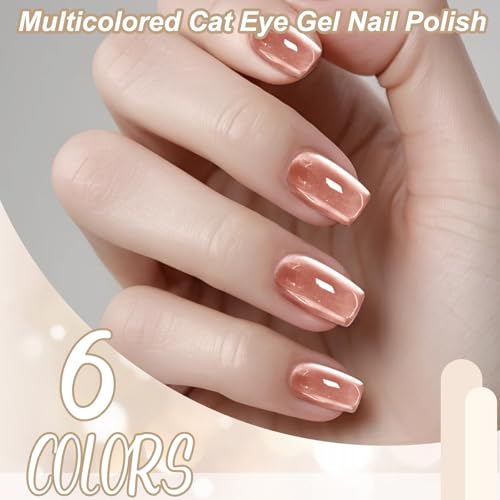 - 【6Pcs Magnetic Gel Polish Set】6 Bottles of Glass cat eye gel nail polish (7.5ml each), 1 double-headed magnet stick. Enjoy the DIY fun of nail beauty at home. Suitable for natural nails, false nails, acrylic nails, etc.