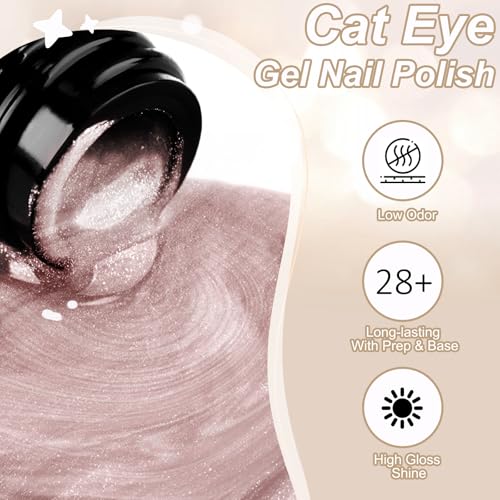 - 【Long-Lasting & Easy Application】Formulated with natural resin and a smoothie texture, this gel cat eye nail polish resists smudges, chips, and cracks. Cures under UV/LED lamp (60-120 secs) for 28+ days of shine. The magnetic nail polish glides on evenly for a flawless, salon-quality finish.