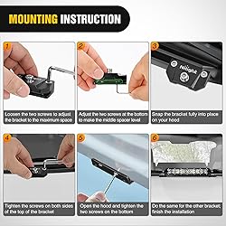 Excellent quality: Made of premium aluminum and 304 stainless steel, durable enough, CNC formed and pressed, precise size, smooth edges, electrophoresis process, covered with thickened black matte powder, durable and non-fading and not easy to scratch for long service life For thickness range: Can be used for 3MM-5.5MM thickness car hood, MAX thickness of 5.5MM; NOT suitable for ATVs, UTVs Anti-slip Design: The contact surface between the bracket and the hood is covered with a two-layer composite rubber pad, which is more non-slip and stable, and ensures that it will not damage the car paint Universal Fit: It can be used to install almost all LED light pods, off-road light bars, auxilary driving fog lights, no drilling required, just clamp the kit and tighten up Package Include: 2pcs mounting brackets, a pack of hardware, 1 User Manual