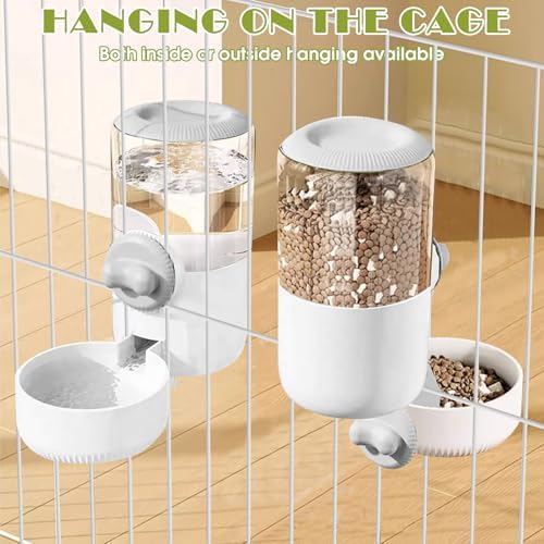 0.9L Hanging Automatic Cat Water Dispenser, 1.3L Auto Gravity Pet Feeder, Cage Cat Dog Food and Water Dispenser Set for Kitten Puppy Bunny Guinea Pig (Gray)