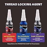 Red Purple and Blue Lock Tight Threadlocker 10ml-3Pack, Low, Medium and High Strength Locktight Thread Locker for Metal, Fasteners, Nuts, Bolts to Against Losening and Seal