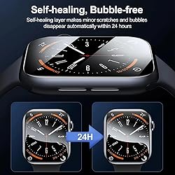 [Effortless Installation] Solved the number one challenge of screen protector installation. With easy installation tool, installing your screen protector is so simple that even a beginner can do it. [Self-Healing Technology] This screen protector for apple watch 41mm utilizes self-healing TPU material that provides astounding self-healing capabilities. Within 24 hours, minor scratches and small air bubbles will disappear on their own, leaving your screen crystal clear. [Maximum Coverage and Protection] This screen protector offers comprehensive protection against daily wear and tear, keeping your device looking like new. [HD-Clear & Smooth Touch] With a 99.99% transparency and ultra-thin design. Experience high-touch responsiveness and sensitivity that rivals the original apple watch touch screen. [Package Include]: 6-pack screen protector and 1-pack Installation kit for Apple watch Series 9/8/7 41mm, 6 pack cleaning set and dust stickers. Please check with your Watch model & size before ordering. Please Watch the Installation Video Before Install.