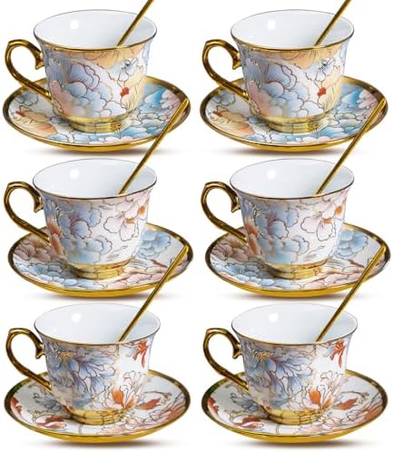 - 18 Piece Set for 6: Includes 6 x 8 oz tea cups, 6 matching saucers, and 6 gold-colored spoons—ideal for afternoon tea, espresso, Turkish coffee, or entertaining guests in style.