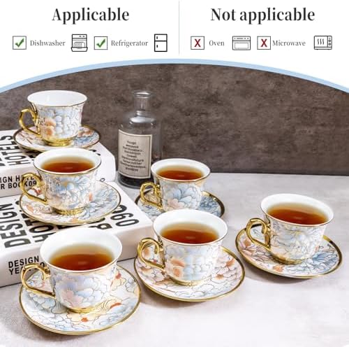 - Dishwasher Safe but NOT for Microwave/Oven: Each cup is embellished with elegant gold trim, giving it a luxurious touch. While dishwasher-safe for easy cleaning, please avoid using in microwave or oven due to the metallic decoration.
