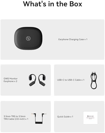 • Complete Kit for Flexible Use - Comes with OWS monitor earphones (x2), earphone charging case, USB-C cable, 3.5mm TRS cable, and quick guide. Designed for both creators and everyday users, offering maximum flexibility out of the box.