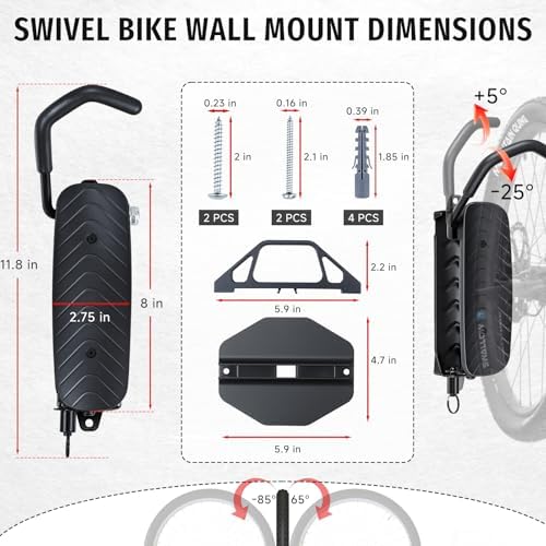 - 【Space Saver】 Free up your valuable floor space with our stylish “rotating” bike rack, keeping your garage or indoor area tidy and clutter-free. Perfect for apartments, homes, garages, and sheds. The bike wall hanger fits most bicycles, including road bikes, mountain bikes, cruisers, BMX bikes, and even those with fenders. Note: This bike holder garage is not suitable for bikes with tire and rim depths exceeding 3.5 inches/90 mm.
