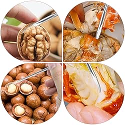 - Nut Cracker Set,Stainless Steel Nut Cracker Tool Set Cleaning up after use is a breeze with our walnut cracker set. Simply rinse it under water for a quick cleaning, or effortlessly place it in your dishwasher. Suitable for pecan,nut crackers,crab crackers,walnut,macadamia nut,almond,seafood,great for restaurants,picnic,trip and portable use. Specificiations: Color: Silver Material: Stainless steel Nutcracker Size: 12.5 cm/4.92 inches Picks Size is 12 cm/4.72 inches Packing list: 1Pcs x Stainless Steel Nut Cracker 2Pcs x Stainless Steel Picks