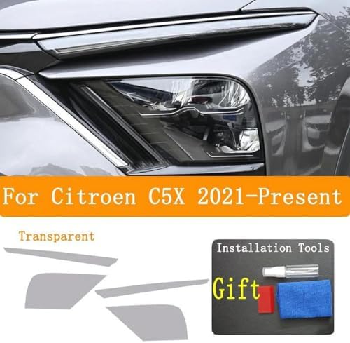 Car B/C Pillar Headlight Protective Film Headlamp Smoked Black Tint Anti-Scratch Protective TPU Sticker,for Citroen C5X 2021 -Present