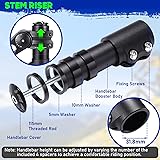 【Comfortable & Ease Riding】-- Our adjustable stems achieve your desired riding position and maximize comfort with the Stem Riser to accommodate riders of varying heights and preferences, particularly for touring where you spend long hours in the saddle. The extension tube adjustment lets you find the most comfortable riding position, enhancing your overall experience. You can sit up straight when you are riding. No more back pain, fear of falling in corners, leaning full weight on your wrists 【Versatile & Various Compatibility】-- Our stem riser diameter fits 31.8mm and a height of 115mm, including 4 spacers that can be adjusted to the appropriate riding position. Adjustable MTB stem Diameter fits 31.8mm and a height of 145mm. From -90°angle to +90°angle can be adjusted. Whether you prefer a more upright riding position or need extra clearance for your knees, the Stem Riser has you covered. Please conform size fits before your purchase 【Upgraded & Durable Material】-- Our stem is aluminum oxidized for strength and durability so it is light enough for all-mountain and strong enough for free ride/downhill. Strong, light and secure adjustable bicycle stem also ensures optimal comfort and control 【Easy & Fast Installation】-- Our stem comes with 2 handles and installation instructions to make your installation easier and more convenient. Simply follow the instructions in the installation manual to easily complete the installation process. making it a versatile choice for mountain bikes and more. Ride stronger, lighter, and more comfortably 【Complete Product Composition】-- There are included 1 x adjustable stem, 1 x stem riser, 2 x wrench 1x instruction note in our package. Great quality and adjustments are easy, our stem not only is stiff and strong but also looks great and feels even better. Ideal for Mountain Bike Road Bike BMX City Bike Bicycle. Comes with everything needed to put it on and get rolling to inject a burst of fun into your bike travel