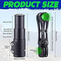 - Features & Benefits Material: Aluminium Rise: From -90°to +90° Adjustable MTB stem diameter -- 31.8mm Package Included: 1 x adjustable stem, 1 x stem riser, 2 x wrench 1x instruction note High-quality adjustable stem is compatible with Mountain Bike Road Bike BMX City Bike Bicycle Great for road or mountain use, Our Stem provides easy solutions for accessory integration. This alloy stem is light and strong, and it gives you endless options to integrate Mountain Bike Road Bike BMX City Bike Bicycle