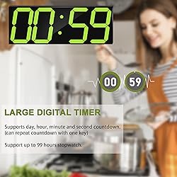 【6-inch LED Number with 8 Level Adjustable Brightness】6-inch numbers and time is long-distance readable and identity. It is good viewing experience indoor and suitable for anywhere because the LED is bright and easy to read. Some buyer complained the LED clock was too bright, now we have upgraded the 8 brightness adjustment, ensure the time is readable in the daytime and the display won't disturb your sleep at night. Auto dimmer will give a big help if you don’t want to control the digital clock. 【Frameless and Ultra-thin Design】Unlike the other digital wall clock which has a thick border in the market, our brand large number digital clock using the shell which is redesign by us. The use of ABS plastic ensures that the wall clock is fire-retardant, lightweight and strong. There are two hanging holes and standback support for mounted the clock on the wall or place on the table. 【Corded Electric and Energy Saving】Corded Electric is the best choice and the stablest power for this large digital wall clock. As we have known, LED is very energy saving and long usage time, so our clock also has this advantage. 10 feet USB cable can plug in the laptop, PC, power bank. (we don’t recommend using the power bank.) A CR2032 coin cell can be installed to ensure that the large digital clock remains accurate when disconnected from the power supply, but the coin cell does not power the digital clock.There is no battery cover, it is designed . 【Huge and Visible Countdown Clock】This countdown timer supports 364 days 23 hours 59 minutes 59 seconds ultra-long countdown time. Also can set for the minute or seconds countdown. Nobody will miss the countdown because of the 6-inch huge red numbers. We updated the user manual and took a video tutorial for countdown function, if you don’t know how to set it, just contact us to get the video tutorial and new version user manual. 【More Details are been Promoted】4 memory chips were added to the clock; Upgraded the wall clock CPU chip, provide the more precise timing; Upgrade the LED display refresh rate, more stable display and good for your eyes; Upgrade the remote control distance for 49 ft; (without any obstacle.) We do our best to provide a more useful and accurate digital wall clock.