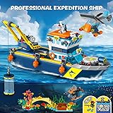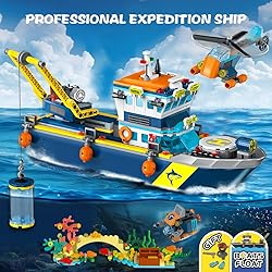COOL LED LIGHTING DESIGN: Delve deep into the ocean and explore its secrets! HiWEEGO ocean expedition ship building set is equipped with LED lights, realistic ship models and lifelike details, enough for kids to play adventure-loving explorers, driving the Arctic expedition ship plane and exploration tools to explore the mysterious underwater world under warm lights RICH CREATIVE DETAILS: This floating explorer ship building block kit includes a boat that can float on the water, with a working crane, shark cage, submarine and helicopter, as well as models of sharks, octopuses, ocean coral reefs and underwater treasure chests, gold coins, oxygen tanks and more. Kids can easily dismantle the cabin's roof and second floor to learn about the cockpit and laboratory interior, create their own ocean world SAFE MATERIALS, EASY TO ASSEMBLE: All 542 PCS building bricks of this floating exploration ship building toy are made of high-quality non-toxic ABS plastic, which can be installed tightly and firmly. Smooth edges and precision molded parts ensure that it can be assembled into an cool floating boat, measuring 6.5 inches (16.5 cm) high, 13.6 inches (34.5 cm) long, and 3.8 inches (9.6 cm) wide. Comes with a colorful instruction manual and stickers, allowing little adventurers to build independently EDUCATIONAL LEARNING: HiWEEGO adventure ship building blocks model is not only a fun adventure toy set, but also an educational role-playing toy. Kids can float the boat on the water, use the crane to lift the submarine and cage, and sink it to the bottom of the ocean to find a treasure trove of gold bars and gems. They can also fly a helicopter to explore the Arctic, or conduct various research experiments in the science lab for hours of learning pleasure CREATIVE GIFT FOR BUDDING EXPLORERS: This deep sea exploration ship building toy set is packaged in an exquisite gift box, making it the most interesting birthday, Children's Day, Christmas or any other holiday gift for boys and girls aged 6 7 8 9 10 years old who like cool toys, or as any other summer activity. Bring imaginative ocean adventure to life, allowing every child to realize the dream of becoming a captain, scientist or explorer