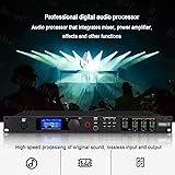 【Digital Audio Processor】An audio processor that integrates mixer, power amplifier, effects, etc., which can be easily debugged by connecting to computer software 【Optimize Sound Quality】Provides graphic and 8-band parametric equalizer to enhance low-frequency response, built-in speaker crossover, limit speaker time adjustment and delay, etc 【LCD Screen】LCD screen to display channel and function settings, dedicated buttons to set all audio parameters and tools, LCD screen can display the current preset number and the selected input or output channel and its related parameters 【Anti-howling】Noise gate can help us remove noise and hissing of the signal, and can also produce very special effects 【Application】Metal material, brushed glossy panel, beautiful and fashionable texture, suitable for KTV/home entertainment/ performance conference, etc