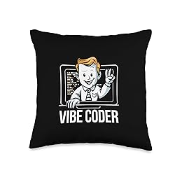 Retro Programming Aesthetic design. This unique design is the perfect gift for software engineers, developers, and tech lovers who appreciate a touch of vintage style Featuring a 1950s-inspired man in a computer screen, paired with the bold phrase "VIBE CODER," this artwork blends mid-century aesthetics with modern coding culture 100% spun-polyester fabric Double-sided print Filled with 100% polyester and sewn closed Individually cut and sewn by hand Spot clean/dry clean only