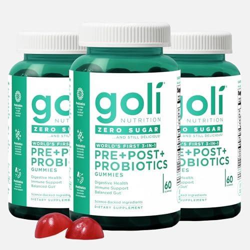 Goli Zero Sugar Pre, Post, Probiotic Gummies. World's First 3-in-1 Gluten-Free, Vegan, Non-GMO, and Gelatin-Free. (3)