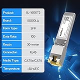 【SFP to RJ45 Module】Seamlessly transmits data up to 30 meters (Cat. 5e or above) at 10/2.5G/1G/100Mbps between your SFP+ interface and copper Ethernet port. 【10Gb Broad Compatibility】This copper module is compatible with fiber switches, media converters, routers or other fiber optic equipment with 10G SFP+ ports. Perfectly adapts to SODOLA 2.5G switches with 10G SFP+ port. 【Easy Installation】Plug and Play, this sfp to rj45 10gb Transceiver with no software installation or configuration/technician required. 【Durable Metal Housing】High quality metal housing to ensure long-term use safely and securely, and can maintain stable connection transmission in various environments. 【Hot Pluggable】Plug in or remove your SFP+ module without shutting down your network. The hot-swap-ability ensures that your network always remains intact and uninterrupted.We provide product- replace- without- repair service within 2 years, more concern on your using experience.