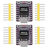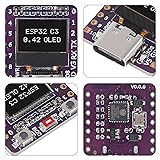 2PCS ESP32-C3 OLED Development Board With 0.42 Inch OLED Module Ceramic Antenna Wifi Bluetooth ESP32 Supermini Development Board ESP32C3 0LED development board based on ESP32C3FN4/FH4 design and production of core board, built-in 4M flash, with WiFi and Bluetooth two modes, onboard ceramic antenna, equipped with 0.42 inch 0LED screen, support for usb download, invested heavily in the launch of gold ESP32C3 0LED development board High cost-effectiveness, compared to the performance and functionality it provides, ESP32-C3 has significant cost-effectiveness and is suitable for large-scale deployment of IoT projects. Rich peripheral interfaces with abundant peripherals and functions, suitable for small projects and scenarios such as IoT, wearable devices, and smart homes Pin interfaces: 1xI2C, 1xSPI, 2xUART, 11xGPIO (PWM), 4xADC