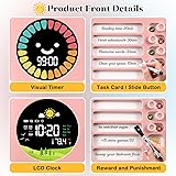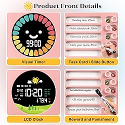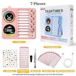 - We recommend you a visual timer that combines efficiency, fun and practicality! It is only 19*18.5*3cm in size, beautifully packaged in a colourful box with a wealth of accessories: 1 PVC task card, 20 paper task cards, 1 erasable water-based pen, 1 beautifully patterned sticker and 1 charging cable to meet your diverse needs. This timer has a precise count-up and countdown function from 1-99 minutes, and the colourful petals on the edge of the screen decrease with time, which not only enhances children's awareness of time, but also effectively improves efficiency and cultivates self-discipline. Its silent mode is perfectly suited for classrooms, libraries and other quiet environments, while the ringer mode is also suitable for a wide range of occasions such as kitchen cooking, housework, sports and fitness, work and games and entertainment. As an ideal gift for Children's Day, Christmas, Thanksgiving and New Year's Day, it is not only a powerful assistant for children to improve their self-management skills, but also a thoughtful gift for students and ADHD to help them become more independent in learning and life. What's more reassuring is that this timer designed for children is easy to operate, with intuitive buttons on the back and detailed instructions to ensure that every user can easily get started and enjoy a productive life. Own it now and start a new chapter in your child's self-disciplined growth!