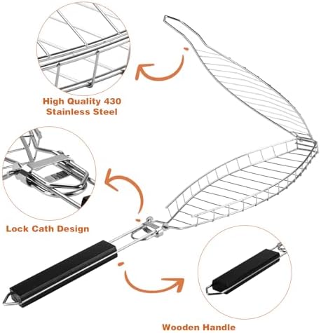- Lockable Feature and Optimal Grid Gap: The lockable design of the grill basket securely holds food in place, making it effortless to flip grilled items. The grid gaps are precisely sized to ensure even heat distribution while preventing smaller food pieces from falling through