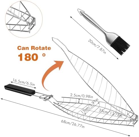 - Unique Fish-Shaped Design: This fish grill basket and basting brush are constructed from 430 food-grade stainless steel. They are reusable, durable, and rust-resistant, ensuring long-term use. The grilling area of the fish basket measures 13.78 x 5.91 x 0.98 inch