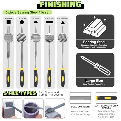 - 【5 Shapes of Metal Files Catered to A Wide Range of Tasks】They are flat steel file, flat warding steel file, square steel file, triangular steel file, round steel file, and half-round steel file, for 3D objects Polishing and Processing such as filing, deburring, shaping, and smoothing etc. Worth mentioning, our metal files are made from high-hardness carbon steel and feature ergonomic handles for extended use.