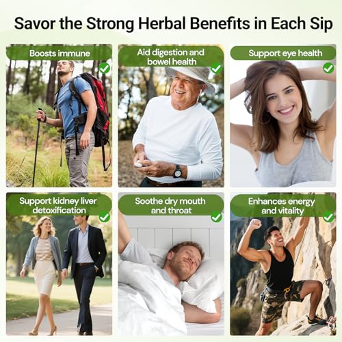 - 11 NATURAL HERBAL FORMULA: Hand-picked and carefully selected 11 natural herbs including Ginseng, Dendrobium, Cassia Seed, Kudzu, Red Reishi Mushroom, Mulberry Leaf, Burdock, Goji, Mulberry, Jujube, Chrysanthemum, no additives. Scientifically formulated to gently nourish your kidneys, support natural detox, and deliver dual detox and nourish benefits, it is ideal for your daily wellness