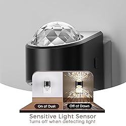 - Star Projector Lights: The night light projector plug into wall features a unique warm light neon galaxy lights that projects beautiful and intricate light patterns, making it one of the most stylish projector night lights plug into wall, perfect for kid, bedroom, home decor. 3 Level Adjustable Brightness: This warm white night light plug into wall offers 3 dimmable levels ((30/60/100LM), providing gentle illumination perfect for Nursery, bedtime, or cozy ambiance—no harsh glare. Dusk to Dawn Auto Sensor: Energy-saving night light automatically turns on at dusk and off at sunrise, ensuring safety and convenience in hallways, bathrooms, or kids’ rooms Up & Down Projection: The dual projection design of this night light casts light both upwards and downwards, providing comprehensive illumination and creating a stunning visual effect. Premium Safe Material & Versatile Use: Made with durable-safe plastic, this soft white night light is perfect for nurseries, bedrooms, or bathrooms—providing gentle illumination for babies, cozy ambiance for adults, and sleek decor for gaming rooms or holiday themes like Halloween and Christmas.