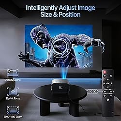 Electric Focus/ Keystone Correction: Enjoy instant focus and crystal-clear images in seconds, just press the remote control seconds without needing to move the movie projector. Plus, it has built-in a 2026 updated super HD lens, so the image always shows vividly and colorfully on the screen, no matter how you position the projector or the size of the projector screen. Max 200" Display, Native 1080P & 4K Supported: Native 1080P resolution provides you with sharp and detailed visuals with full HD quality, perfect for watching movies, playing games, or viewing photos with stunning clarity. Max 200" display, which can make you enjoy the picture from a suitable distance, just press the focus button on the remote control. 3D Stereo Hi-Fi Audio Sound Speakers: Enjoy deep, resonant audio and precise sound details that make you feel like you're part of the action with 3D stereo sound. The built-in low-power Digital speakers deliver crisp, powerful sound that fills the room, ensuring every viewing experience with the smart projector is a true sonic delight. 6G WiFi & Bluetooth 5.2: The projector offers a robust and versatile connectivity experience, with faster speeds, reduced interference, and improved audio and picture quality with dual-band 5G/2.4G WiFi. It supports allowing connection to mobile devices as a standalone stereo speaker or pairing with external Bluetooth speakers, headphones & soundbars to enhance audio effects for home projectors. (Note: Bluetooth function supports audio transmission only, not video) Ultra-Compact Design & multiple install ways: The smallest native 1080P mini projector, weighing only 4.5 lbs, making it the perfect companion for outdoor adventures, family gatherings, or cozy nights. Also, it can be supported table, a stand, or a ceiling mount, which makes you enjoy an excellent home cinema or gaming with friends at home. Upgraded projector : This mini projector has been upgraded. If you are new to home theater, this projector is a good choice, with 1080P resolution, Bring you clear and sharp detailed images. Using the latest color reproduction technology, it accurately restores every detail on the screen to ensure a true and colorful viewing effect. Warm Tips : This projector is not recommended for PPT or business presentation. It is a home theater projector. Due to APP copyright reasons, movies on Netflix, Prime Video etc. can only be watched through laptops, TV sticks and Roku. We offer long-life technical support. Any questions about the product at any time, please feel free to contact us. Reliable Customer Support: We are committed to providing exceptional after-sales service, ensuring you have a worry-free experience with our projector. Enjoy 24/7 support, a 3-year protection, and lifetime customer care for any concerns or issues. Our team is always ready to assist, ensuring peace of mind with your purchase.