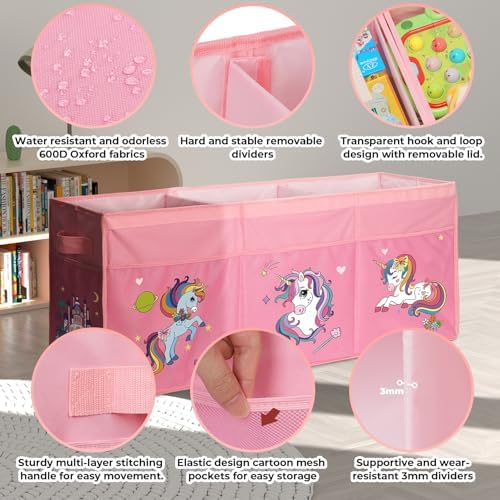 • Collapsible Adjustable 2 Dividers Box for More Space Choice: The adjustable dividers inside the pink toy box are convenient for you to choose different space sizes to meet different sizes of toys storage and also can be taken out