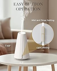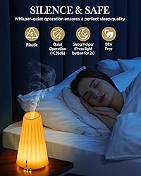 Premium Materials & Effortless Care:Crafted from high-quality, heat-resistant BPA-free plastic, this oil diffuser combines durability with safety. Its sleek design is not only long-lasting but also hassle-free to clean—ideal for daily use in any home 2-in-1 Aromatherapy & Humidification:More than just a diffuser, it acts as a mini humidifier, enhancing air moisture for easier breathing and better sleep. With a 120ml large capacity, it efficiently freshens up spacious rooms while dispersing your favorite essential oils Whisper-Quiet & Sleep-Enhancing:Designed for tranquility, it operates at under 20dB—quieter than a whisper. The adjustable soft night light doubles as a sleep aid, creating a calming ambiance for kids and adults alike Customizable Timer & Auto Shut-Off:Tailor your relaxation with three timer options (1H/2H/3H). The auto shut-off feature ensures worry-free use, making it perfect for bedtime, work, yoga, or reading sessions Elegant Gift for Wellness Lovers:Pair it with any essential oil for a personalized aromatic experience. Whether for a housewarming, birthday, or self-care treat, it’s a stylish gift that brings serenity to bedrooms, offices, or meditation spaces