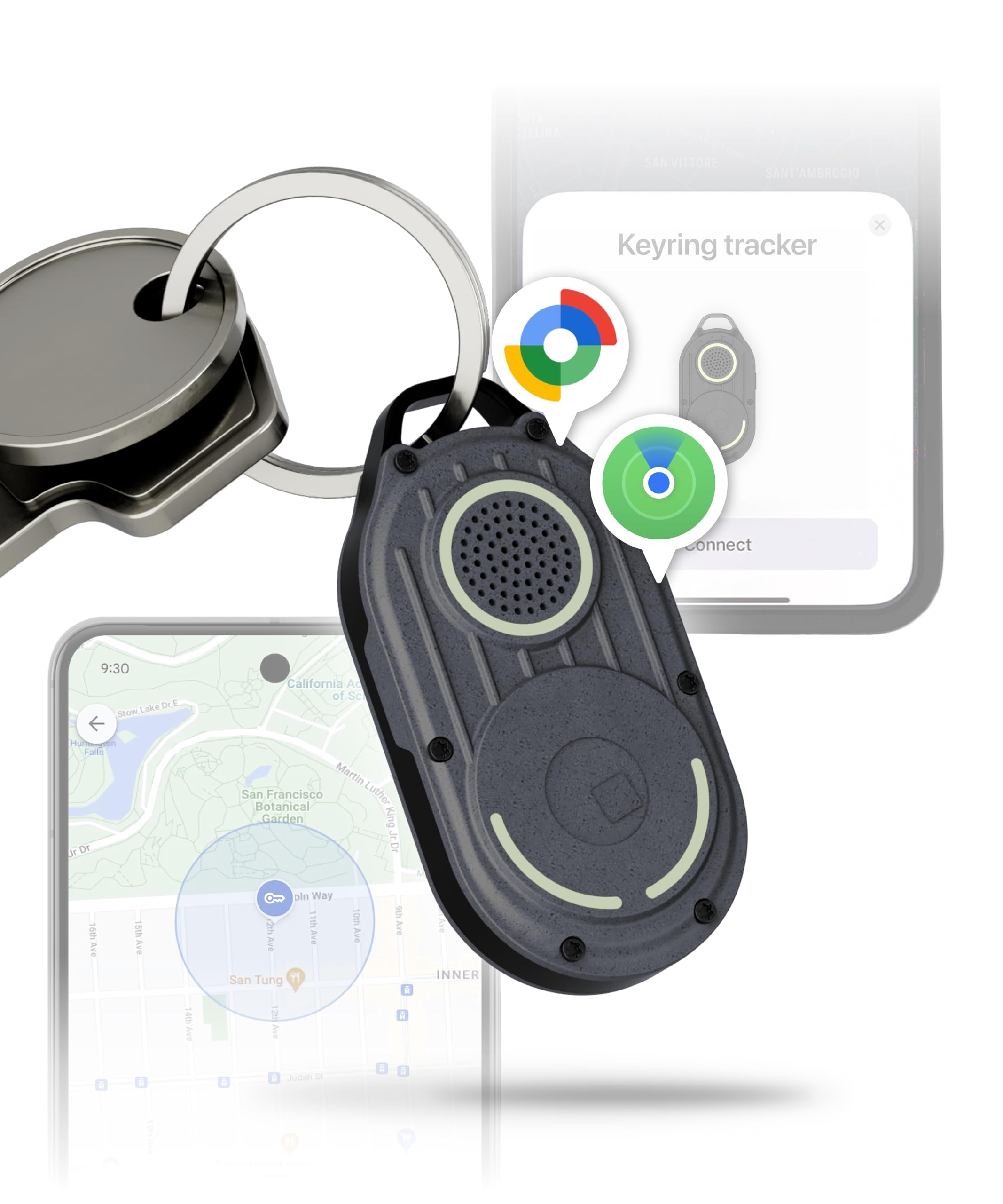 - 360° OMNIDIRECTIONAL SOUND – Equipped with dual buzzers (20mm and 15mm) on opposite sides, it delivers a loud, clear sound in all directions. Easily trigger sound through the Apple Find My app or Siri to find your items even in tight spaces.