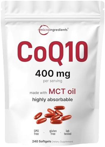 Micro Ingredients CoQ10 400mg Per Serving | 240 Softgels with Coconut MCT Oil | High Absorption Coenzyme Q10 as Ubiquinone | Antioxidant Support for Heart & Energy Health | Non-GMO
