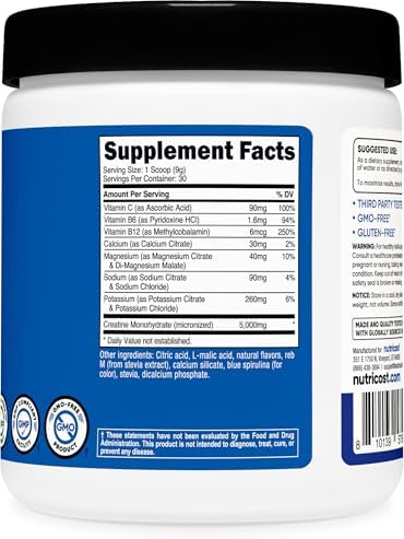 Nutricost Creatine Monohydrate + Hydration Blue Raspberry Flavored (30 Servings) - 7 Vitamins & Minerals, 5000mg of Creatine Per Serving