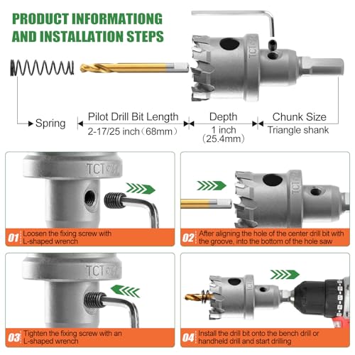 - Excellent Cutting & Industrial Grade Construction: Our carbide hole saw kit for metal adopts excellent heat treated sharp tungsten carbide high-speed steel design, with high cutting efficiency, low consumption, and easy handling of various metal materials, ensuring perfect cutting effect
