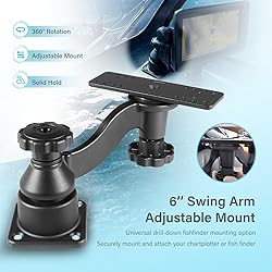 ✴️【Function】Helps you 1) securely mount and attach your chartplotter or fish finder and protect them from being hitting by waves and wind in heavy seas with 2) swing arm for easy and smooth adjustments plus a complete 360-degree rotation. ✴️【Compatibility】Compatible 1)with Garmin echoMAP Chirp/ECHOMAP Plus/ECHOMAP UHD/ECHOMAP Ultra/GPSMAP Striker Plus/Striker Vivid/Striker Plus Series Fishfinders and GPS Chartplotters; 2) with Humminbird Apex /Helix/Solix 15 Series Fishfinders and GPS Chartplotters 3) with Lowrance Eagle/Elite FS/HDS Carbon/HDS LIVE/HDS PRO/Hook Reveal/ HOOK Series Fishfinders and GPS Chartplotters ✴️【360° Rotation 】Highlight its complete 360 Degree Rotation in two pivoting points on the mount: 1) one is at the base of the swing arm: long bent swing arm (6") adjusts both freely and smoothly; 2) the other at the center of the rectangular plate(6.25" x 2"): we can turn it to different angles to view our fish finder. ✴️【Practical Design】1) Horizontal Mounting Base: easily attach this mount to your boat with screws; is rather preferred when deck space is limited. 2) 20 Mounting Holes on the Rectangular Plate: multiple holes not only serves for different mounting options, but are expressly designed to line up with the factory gimbal brackets so we don’t have to drill with extra effort. 3) Thread Pin-lock Knobs: simply loosen or tighten by hand to fix or release the arm or the rectangular plate ✴️【High Quality】1)Well-built with high-strength composite material, this mount offers solid and sturdy hold for your units. 2) Powder-coated steel shows no fear for water and corrosion, which promises its long service span and is definitely a perfect solution for overseas trip. ✴️【Friendly Service】 A full return is available within 30 days if you are not satisfied; we also offer a 12-month warranty from the date of purchase to make sure that you have good experience.