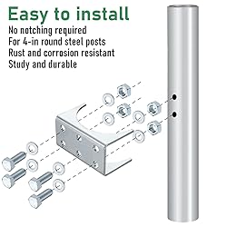 - Features: Long-term Use: Engineered for extended use, this product is for you seeking a durable and reliable solution that withstands the test of time. The use of galvanized steel ensures that it remains functional and effective through various environmental conditions. No Additional Modifications Needed: Designed to bolt directly to the round steel post, this product no need for additional modifications, such as welding or notching. This feature ease of use and practicality, addressing your desire for a straightforward and efficient installation process. Specifications: Material: galvanized steel Color: silver Size: fits 3 inch round steel post Package includes: 1 x Round post adapter bracket 4 x Bolts 4 x Nuts 4 x Washers Notes: Manual measurement, please allow slight errors on size. The color may exist a slight difference due to different screen displays.