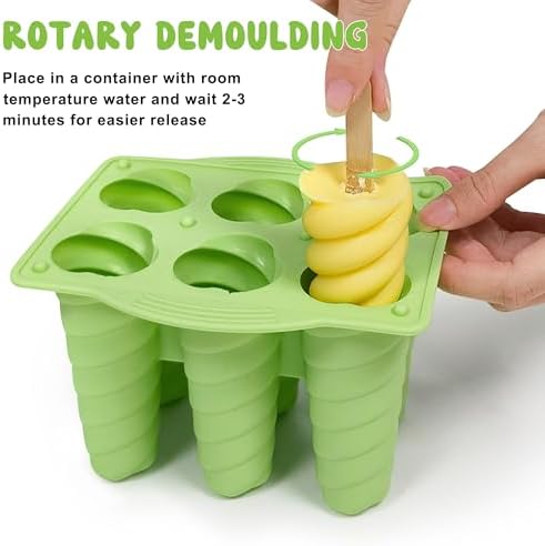- Easy to Release Popsicles: Silicone material makes this ice pop mold maker easier to pull out than plastic or stainless steel ice cream molds.You can leave ice-lolly moulds at room temperature for 2-3 minutes, or briefly dip ice lolly maker in warm water (30 sec), then twist in the direction of the spiral rotation to easily remove the popsicle.After using this ice lolly moulds, it can be hand washed or dishwasher washed.