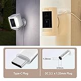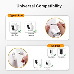 【Compatibility】Ring Spotlight Cam Pro(Battery), Stick Up Cam Battery, Plug-in/Ring Stick up Cam Pro/Ring Pan Tilt Indoor Cam,DC Port & Type C Port. Since the interface model has been officially updated, please confirm your camera's power interface before placing an order Long Cable: With the 13.2ft cable, you can install your Ring camera anywhere and continuously charge your Ring Spotlight Cam Plus/Pro and Stick Up Cam Battery Camera without battery replacement Note: No indicator when charging; But you'll notice that the battery level on the APP increases after an hour. Note: When using the camera for the first time, if camera there is no power at all, please remove the battery and charge the battery Superior Safety: Approved for UL-FCC-CE certification ,Charger with IC chip inside is designed to identify fully charging with safety usage,Protection against over charging,over currents, and over heating,Charging stops when battery is full, USB Cable Using high-quality PVC flame-retardant materials, Durable, long service life, free winding, no knots, no creases 【After-sales guarantee】JMDDS products are sold after strict testing.If you have any quality problems, please contact us. We will provide 365 days of after-sales guarantee service