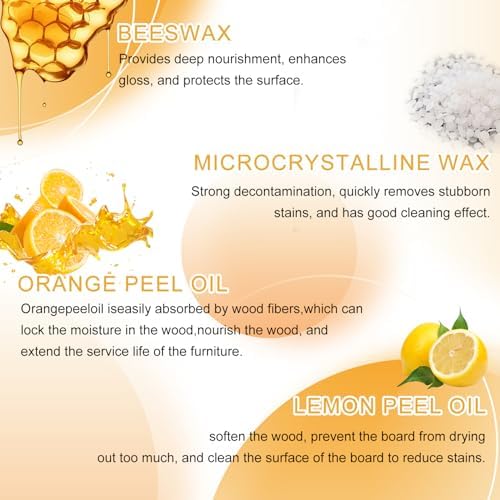 - 【NATURAL INGREDIENTS】Contains pure beeswax and plant essential oils, forming a natural protective layer on the surface of wooden furniture, suitable for home use
