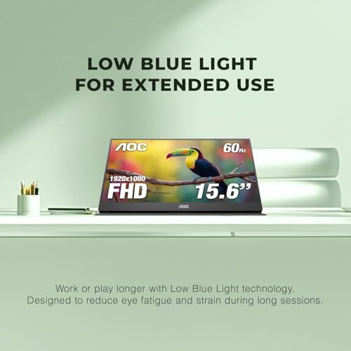 AOC 16T20 Portable Monitor 15.6 Inch FHD 1920x1080, IPS Panel Computer Display, Speakers, USB Type C x2, Mini HDMI x1, Premium Smart Cover, Gaming Console Compatible