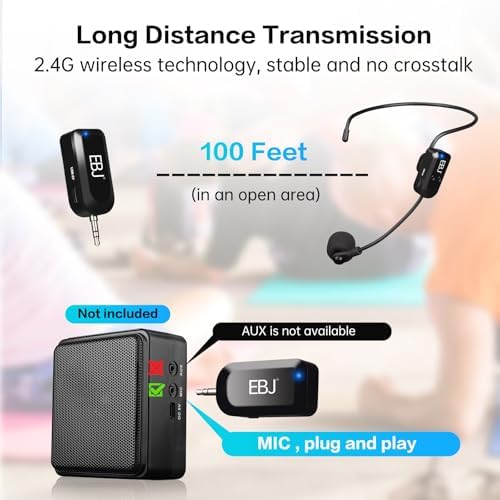- EBJ Wireless Microphone: Do not support mobile phone/ Macbook/computer,Not support Aux or digital audio system.Only suitable for PA equipment with MIC input jack.With 100ft range transmission distance.
