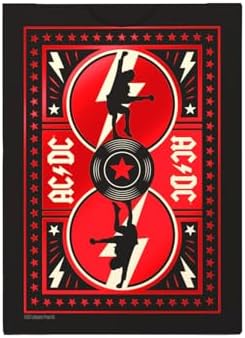 - ROCKING CHARACTER ART– Deal out court cards featuring Angus Young and his iconic guitar. Lightning bolt motifs and callouts to iconic song titles can be found throughout the deck, with custom designed card backs and a flashing red foil tuck case.