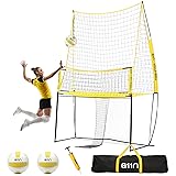 A11N Volleyball Practice Net System, Upgraded 8ft Width with Ball Return, Adjustable Height Spike Trainer with 2 Volleyballs & Pump, Portable Net for Indoor Outdoor Training