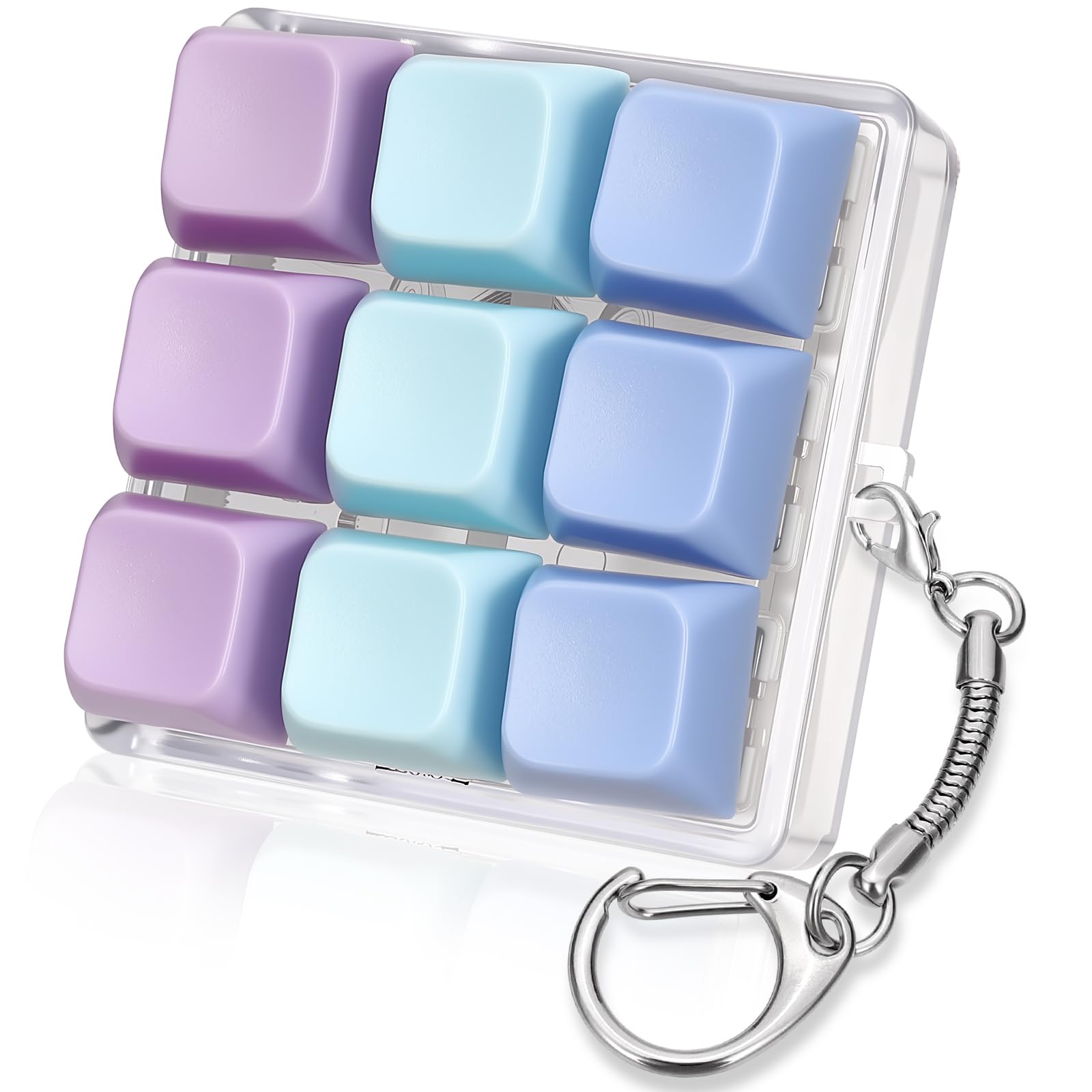 - Perfect Gift - You can change the switches and keycaps to your liking, giving you the fun of a DIY clicking fidget toy. This keyboard fidget toy comes in soft colors designed to relieve visual stress. Vibrant colors are pleasing to the eye and can effectively relieve eye strain and soothe tension, keeping you in a happy mood every day. This keyboard fidget keychain is a thoughtful gift for anyone who loves mechanical keyboard or needs a fun way to relieve stress. You can choose keyboard fidget toy as a birthday gift or Christmas gift