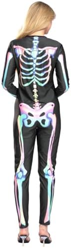 Seasons Women's Halloween Skeleton Costume, Double-Sided Colourful Pattern, Black Light Reactive