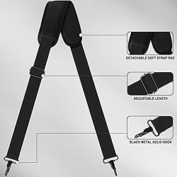 JOCYRN SHOULDER STRAP: high quality nylon. much more stronger than normal nylon straps. top grade materials will provide you with years of use and comfort. perfectly fit for constant use and travel. ADJUSTABLE LENGTH: extra long to help cover your entire shoulder. slide its adjustable clip up to shorten the strap, or down for more slack.adjust from 43" to 72"(included 2 metal hooks), the easy adjustment in length allows for the perfect fit. STURDY HOOK: Black zinc metal hook snaps used strengthen version hardware, easy to attach and solid, sturdy enough to carry heavy package. with this reinforced replacement shoulder strap, you don’t have to worry about the buckle cracking when carry heavy stuff. THE SHOULDER PAD: Elastic stuffing and mesh bottom design for shock absorption and breathable. it is long enough to cushion a large area of the shoulder and reduce gravity, so that keep your shoulder feel comfortable. DURABLE ADJUSTABLE REPLACEMENT STRAPS: Suitable for those bags that are lost or damaged. such as computer bags, laptop/notebook bags, camera bags, briefcases, outdoor sport bags, duffel bags, diaper bag, tool bag, guitar bag, violin bag, travel bags, messenger bags and other shoulder bags. WIDE RANGE OF APPLICATIONS: The JOCYRN Replacement shoulder strap is especially suitable for laptop bags, briefcases, messenger bags, travel bags, duffel bags, duffel bags, nappy bags, tool bags, sports bags, crossbody bags, handbags, gym bags, garment bags, guitars, camera bags and so on. the bag shoulder straps are a perfect gift for your family and friends!