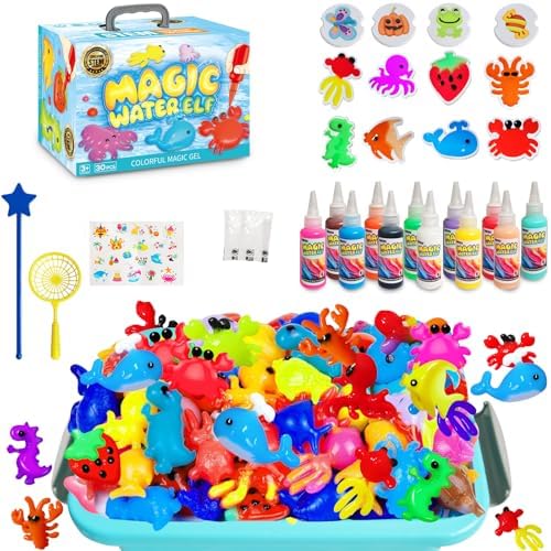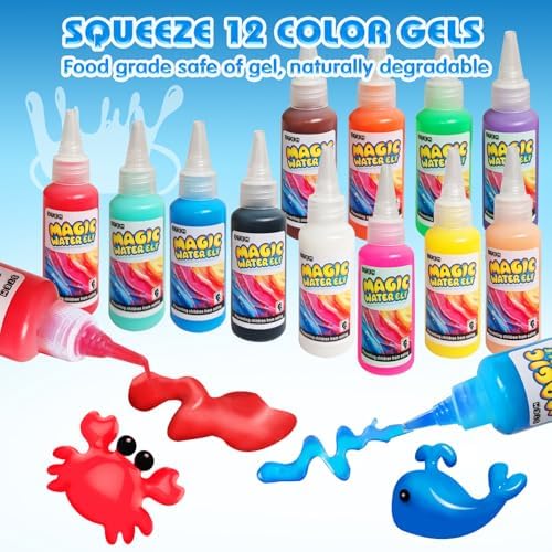- [Create Your Ocean Paradise] Spcozgil Magic Water Elf Toy Kit with 12 vibrant gel colors (60ml each), 12 3D molds, 2 magic powder packs, net, stickers, stirring rod, storage box and easy-to-follow instructions. This complete sensory kit sparks imagination, develops color perception, and delivers endless fun for ages 8+.
