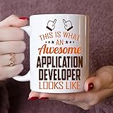 - Looking for the perfect gift for an Application Developer? This Is What an Awesome Application Developer Looks Like mug is a fun and functional choice! Whether you're buying for a seasoned professional, an aspiring student, or a hardworking coworker, this mug is a fantastic way to celebrate their skills.Crafted from durable white ceramic, this 11oz mug is microwave and dishwasher safe, ensuring easy use and care. The bold, humorous design is printed on both sides, making it an eye-catching piece at home, in the office, or on a job site. The comfortable C-shaped handle ensures a secure grip, while the bold printed quote adds a touch of personality to your daily routine. With a capacity of 11 ounces, it’s the ideal size for your morning coffee, afternoon tea, or any drink of choice.Perfect for birthdays, Christmas, graduation gifts, or just because, this civil engineer coffee mug is sure to bring a smile to any Application Developer’s face. Whether they’re sipping on coffee, tea, or hot chocolate, this mug is the ultimate Application Developer!